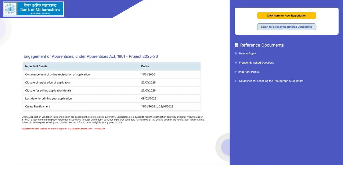 - Bank of Maharashtra Apprentice Recruitment 2026 की official notification 15 जनवरी 2026 को जारी हुई