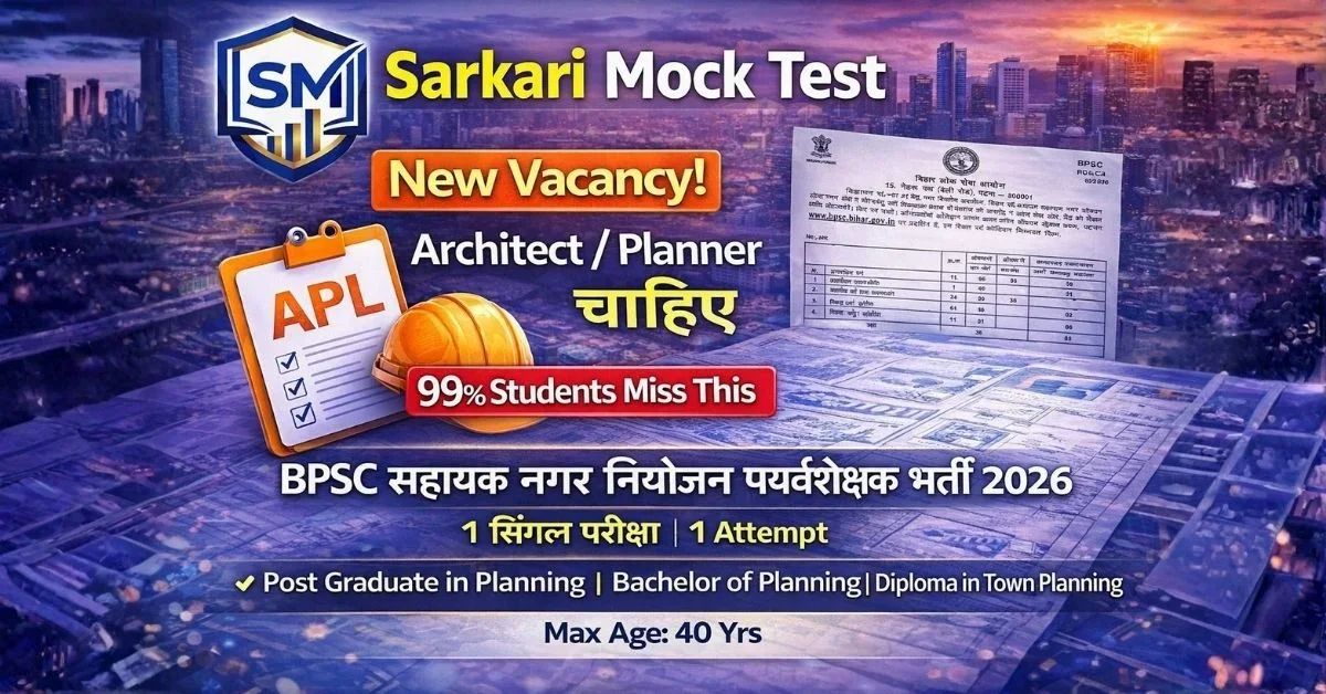 Disclaimer: यह article BPSC Assistant Town Planning Supervisor Recruitment 2026 की जानकारी प्रदान करने के उद्देश्य से लिखा गया है। कृपया सभी official details के लिए BPSC की official website www.bpsc.bih.nic.in और official notification देखें। BPSC Assistant Town Planning Supervisor Recruitment 2026 से संबंधित final authority केवल बिहार लोक सेवा आयोग के पास है। BPSC Assistant Town Planning Supervisor Recruitment 2026 की सभी जानकारी official sources के आधार पर दी गई है। किसी भी doubt के लिए official notification और BPSC helpline से संपर्क करें।