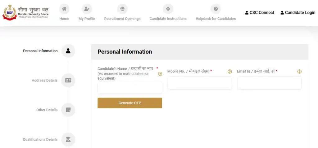 - सबसे पहले BSF की आधिकारिक वेबसाइट rectt.bsf.gov.in पर जाएं।
