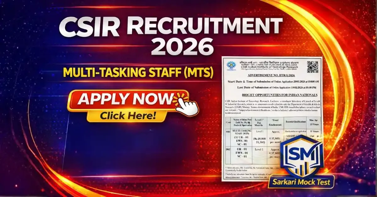 CSIR IITR Recruitment 2026 के लिए Online Application Process 20 जनवरी 2026 से शुरू हो चुकी है। इच्छुक उम्मीदवार जो इस भर्ती के लिए आवेदन करना चाहते हैं, वे अंतिम तिथि 19 फरवरी 2026 तक अपना फॉर्म जमा कर सकते हैं। इस आर्टिकल में हम आपको Eligibility Criteria, Selection Process, Syllabus, और Application Fee की पूरी जानकारी विस्तार से देंगे।