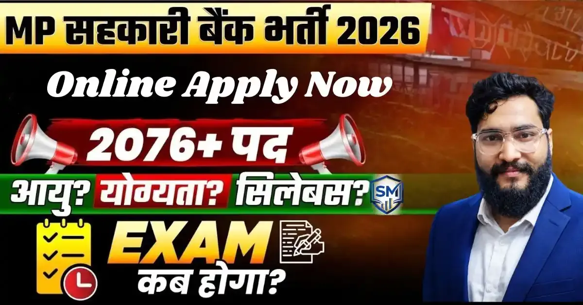 Short Information: MP Sahkari Bank Bharti 2026 में मध्य प्रदेश एपेक्स बैंक द्वारा 2076 पदों पर भर्ती। Computer Operator (748), Society Manager (839), संविदा (176) और Officers (313) पद। ग्रेजुएशन + Computer Diploma आवश्यक। IBPS द्वारा परीक्षा। 6 जनवरी से आवेदन, 5 फरवरी अंतिम तिथि।